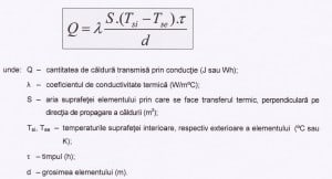 Din formula Fourier tragem concluzia ca in afara de dependenta direct proportionala de densitate, umiditate, natura materialului (cuantificate prin λ, coeficientul de conductivitate termica), conductia termica creste cu diferenta de temperatura dintre fetele peretelui sau acoperisului, cu marirea suprafetei desfasurate, si cu trecerea timpului, dar scade cu cit grosimea peretelui sau a acoperisului este mai mare !
