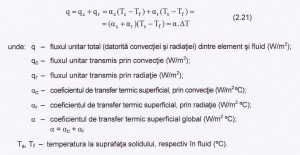 Constatam si aici ca fluxul termic prin convectie si radiatie creste cu cresterea diferentei de temperatura intre fluid si suprafata materialului, dar si cu cresterea coeficientului de transfer termic superficial. Acest coeficient de transfer termic superficial depinde de natura si caracteristicile fizico-chimice ale materialului si ale fluidului respectiv.